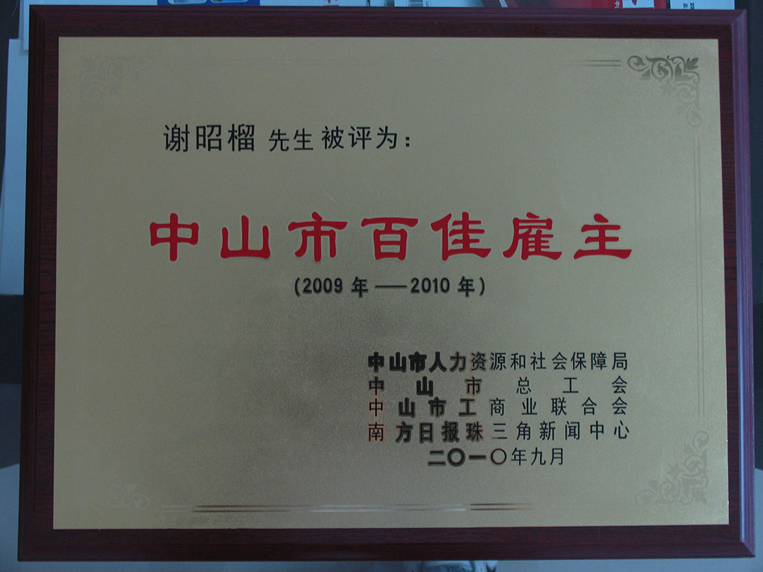 *获中山市小榄镇人民政府颁发“制造业三十强企业”